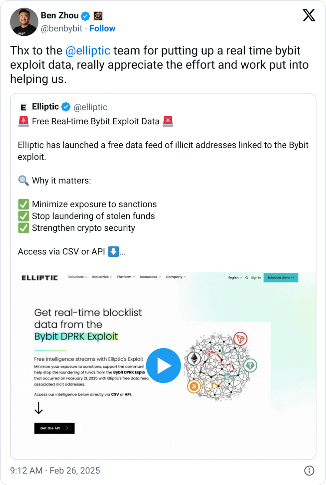 Buna ek olarak, Bybit 25 Şubat’ta Jucian Review Blockchain için Zeroshadow Web3 Güvenlik Şirketi’ne katıldı. Güvenlik şirketinin görevi, çalınan Bybit fonlarının izlenmesi, dondurulması ve maksimum geri kazanılması olacaktır.